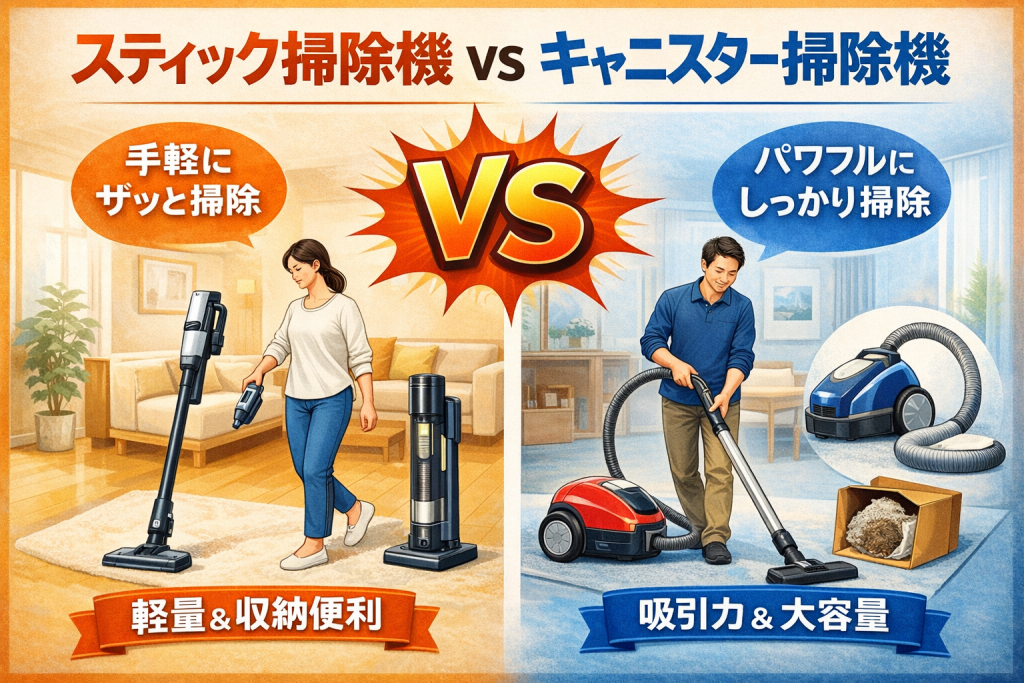 暮らし方で変わる選びどころ 掃除機は、性能よりも「どう使われるか」で合う・合わないが分かれやすい家電。 スティック掃除機とキャニスター掃除機も、得意な使われ方がはっきり違う。 スティック掃除機が合いやすい使い方 思い立ったときにすぐ掃除した... -